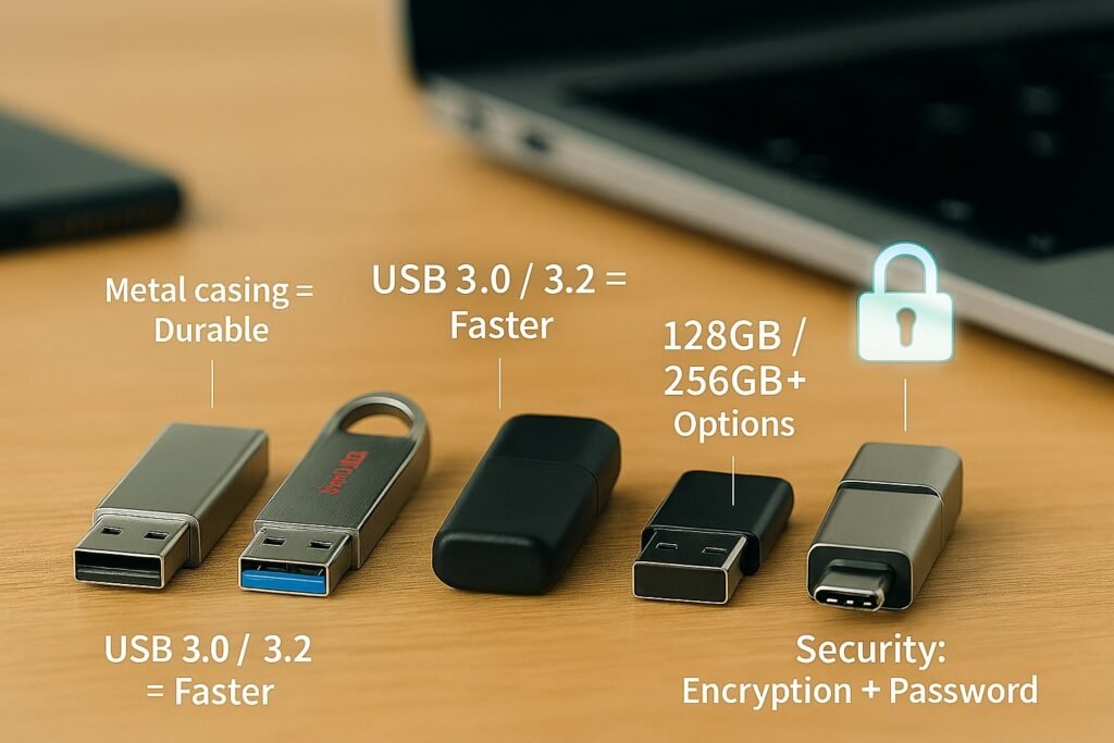 When choosing a good USB flash drive, don’t just check capacity. Focus on write speed, durability, and brand reliability.